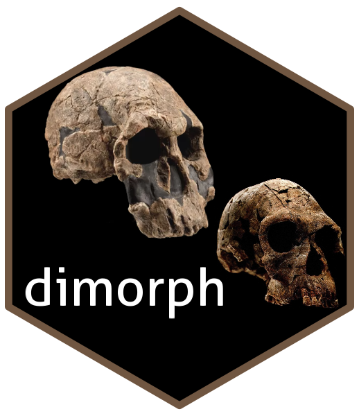 dimorph is a package for estimating size dimorphism based on metric data using multiple published estimation techniques for univariate data and incomplete multivariate data, and for performing resampling-based significance tests for pairwise comparison of dimorphism estimates.