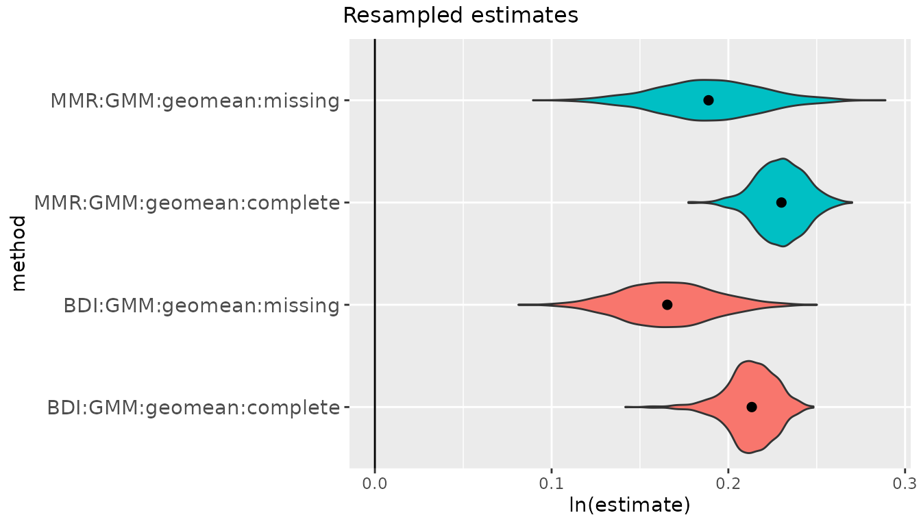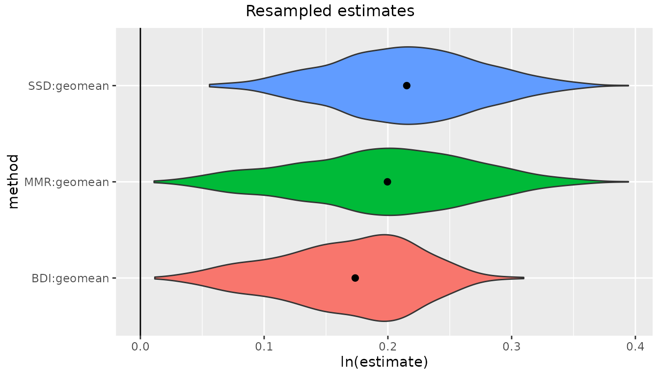 And finally, we can again plot differences in resampled estimates.