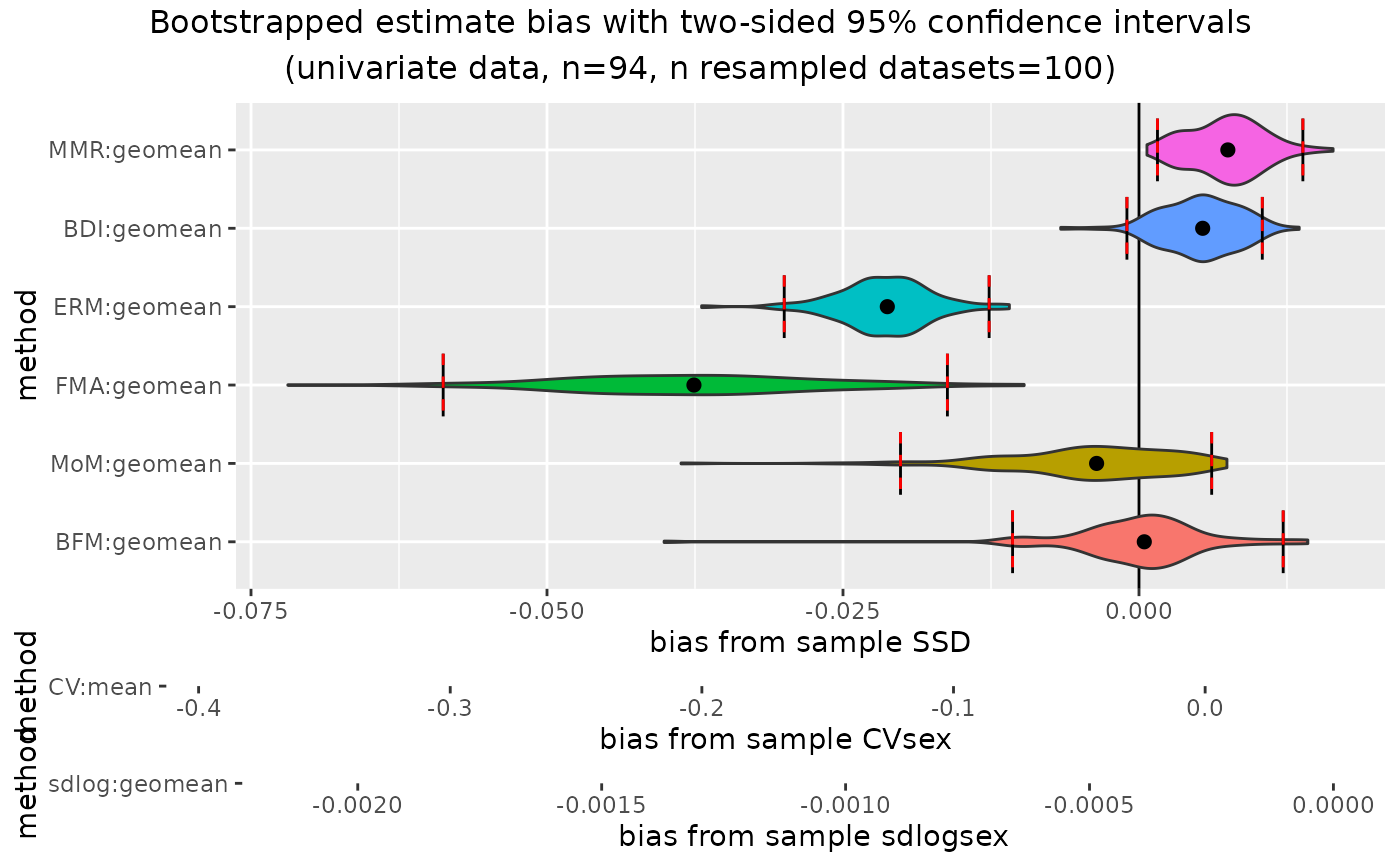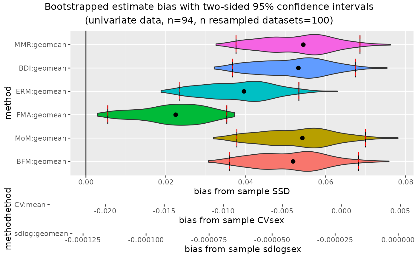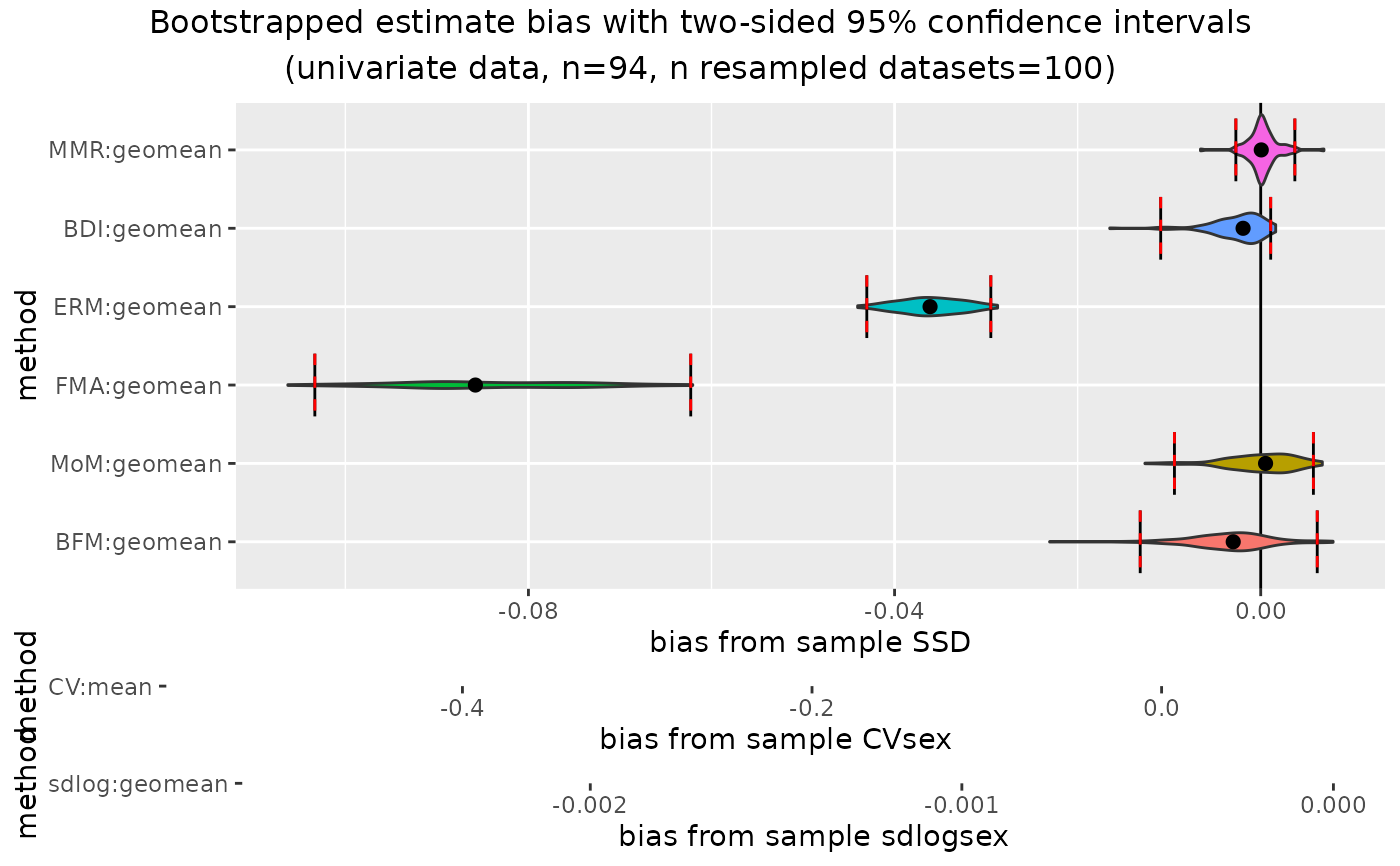 and confidence intervals for bias from sample SSD if relevant. Plotting this object produces violin plots for